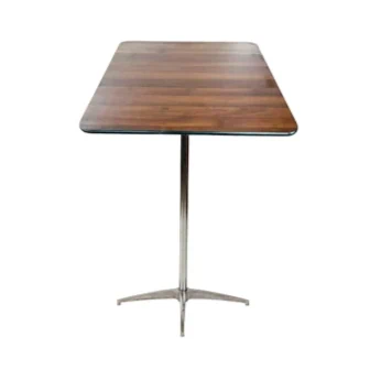 שולחן בר מרובע עץ טבעי - רגל ניקל